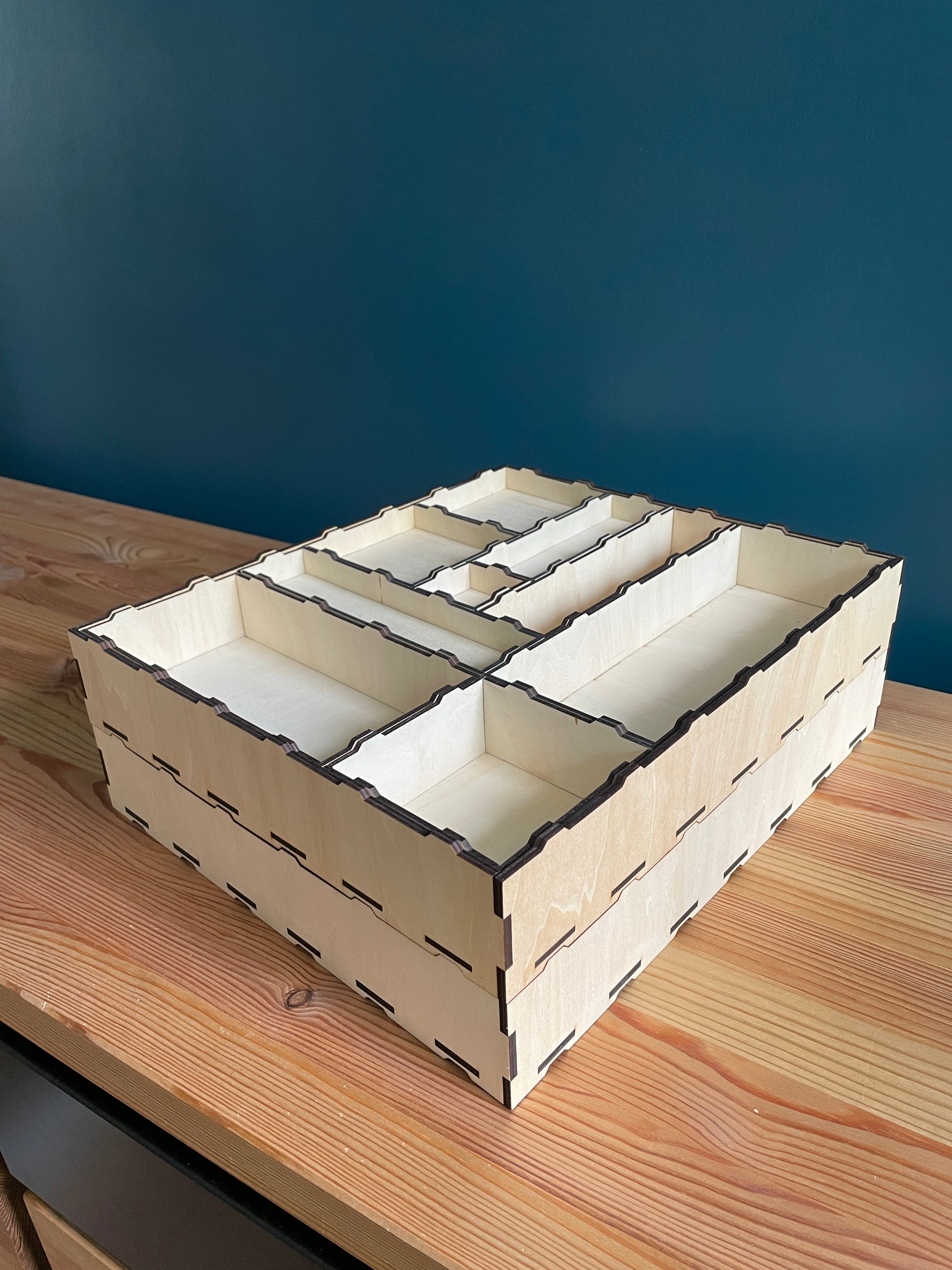 Optimisez votre rangement avec la Maxibox 10 conçue pour accueillir toutes les Neobox. Fabriquée en bois dans mon atelier, elle permet de regrouper efficacement plusieurs Neobox, tout en gardant votre espace clair et organisé.