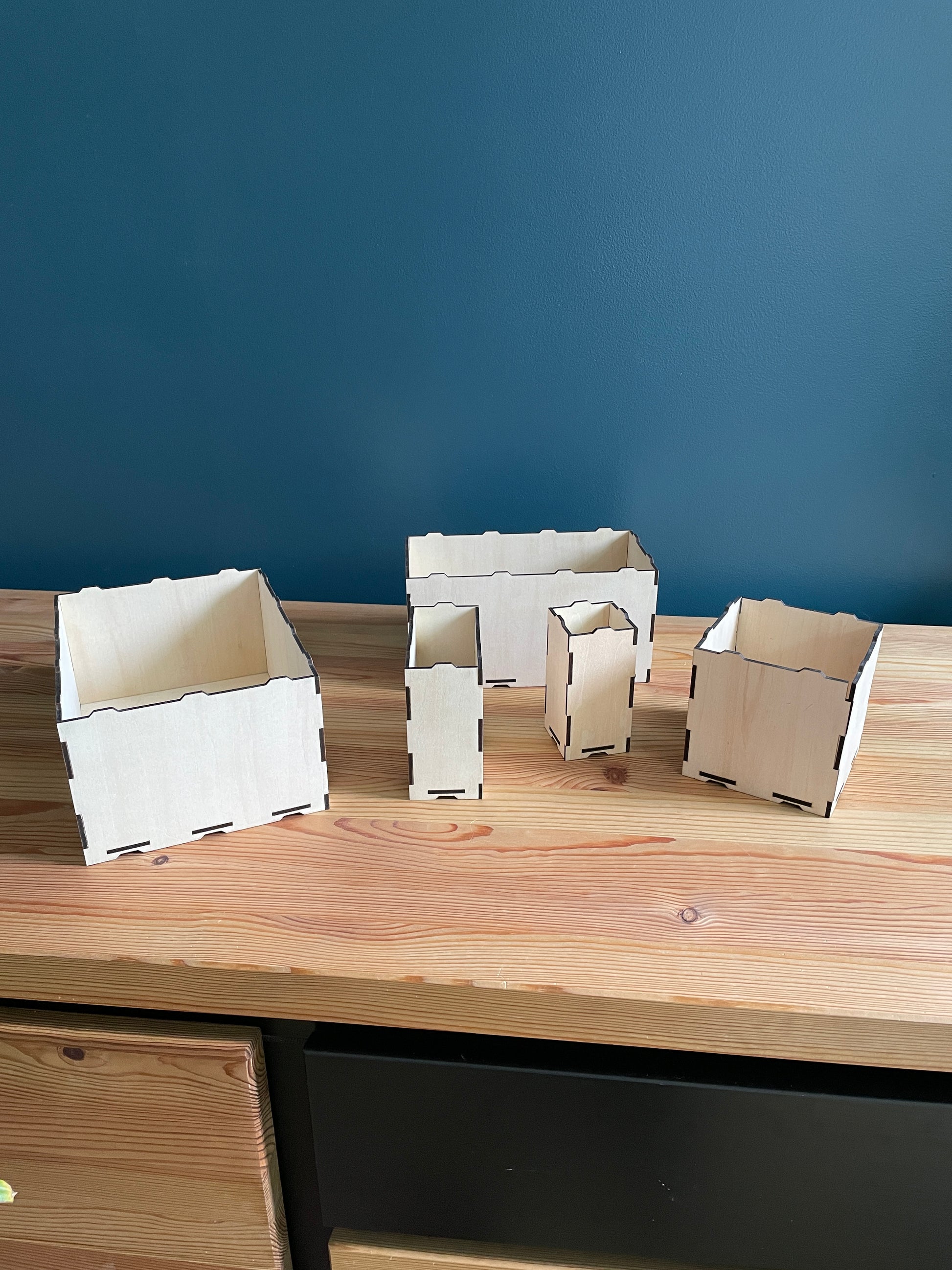 Optimisez votre espace avec la boîte de rangement modulaire Dilubox de 10 cm de haut. Fabriquée en bois dans mon atelier, cette boîte empilable est idéale pour structurer efficacement vos rangements.
