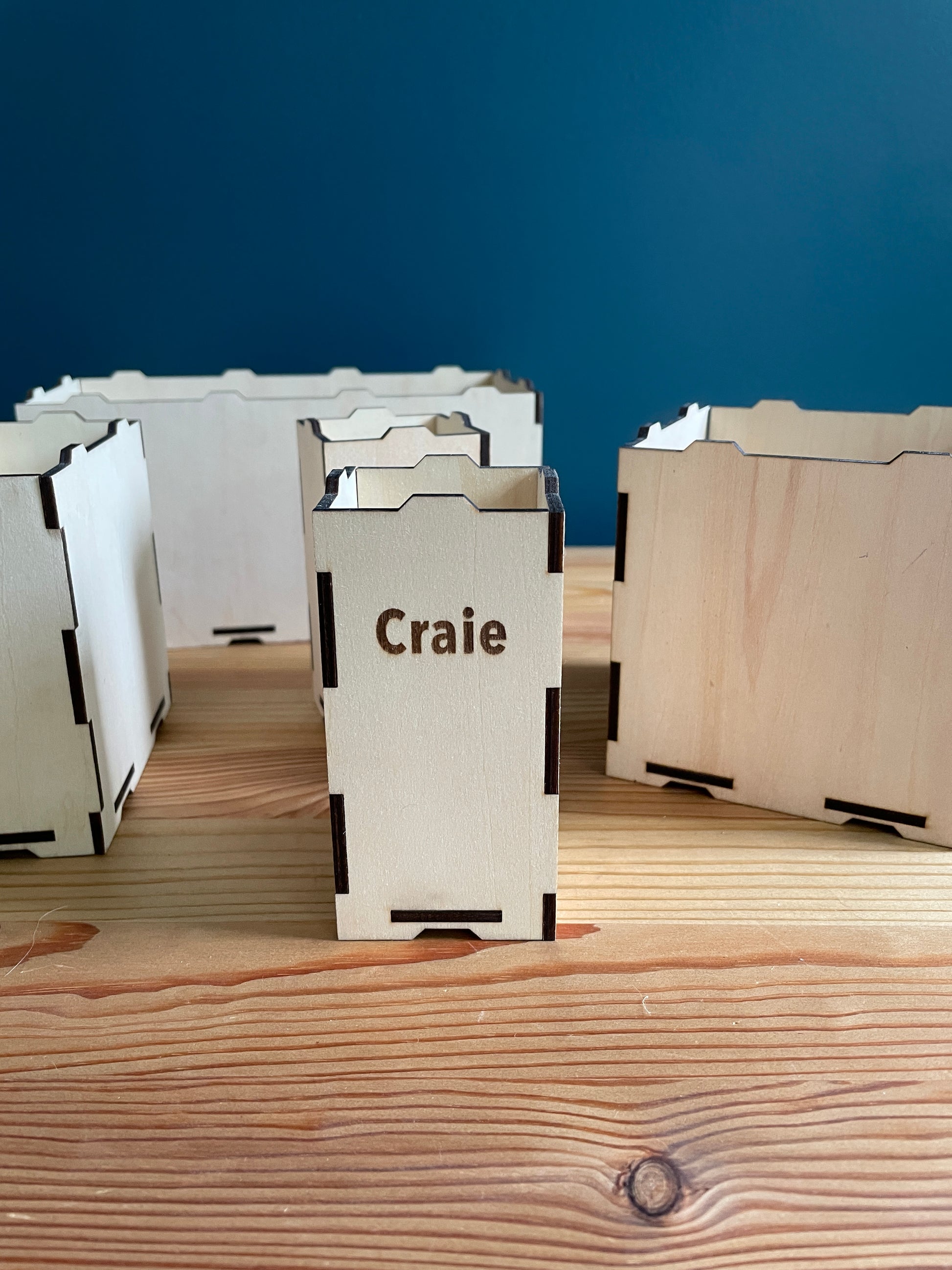 Ajoutez une gravure sur une des face de la boite pour en identifier son contenu.